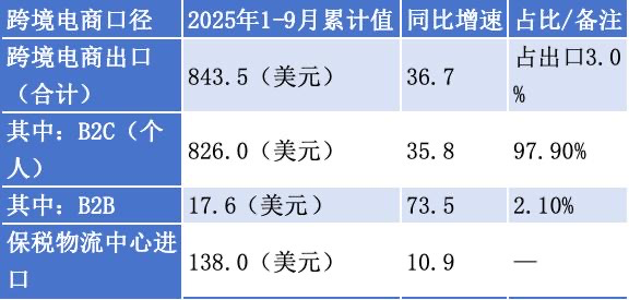 跨境电商成为企业出海的重要增长极。据商务大数据及海关初步测算,2025年1—9月,中国跨境电商出口843.5亿美元,同比增长36.7%,远高于一般贸易增速。