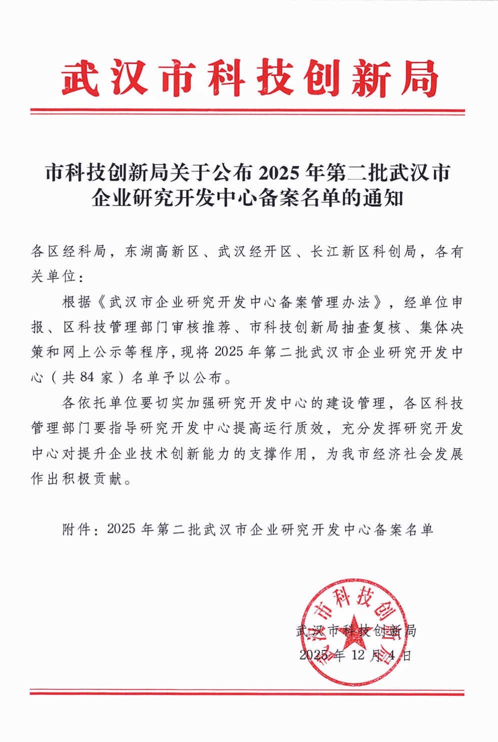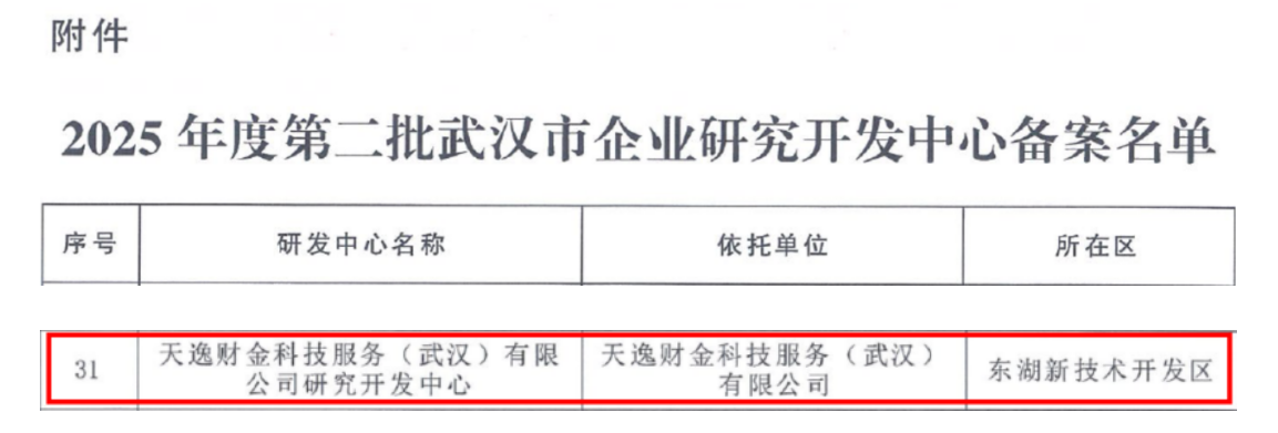(天逸集團獲批2025年武漢市企業研究開發中心備案)