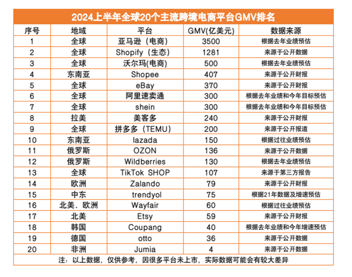 圖2:2024年上半年全球主要跨境電商平臺規模排名