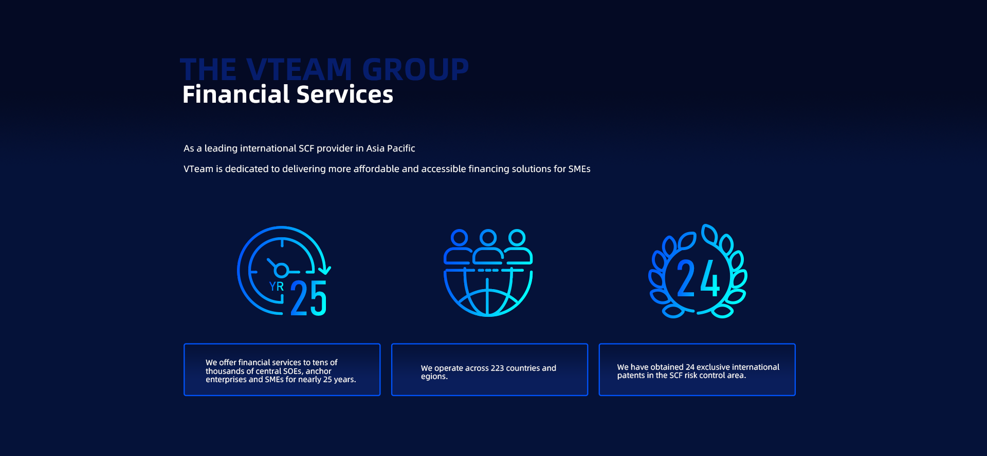 VTeam’s fintech business is underpinned by the core logic of supply chain finance. Leveraging highly competent and seasoned technical teams from China and abroad, we deliver customizable, one-stop R&D and operation services to banks, anchor enterprises, commercial factors and other institutions.